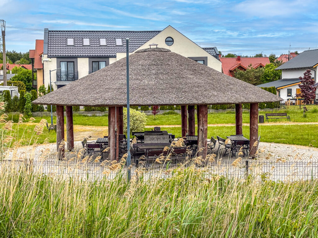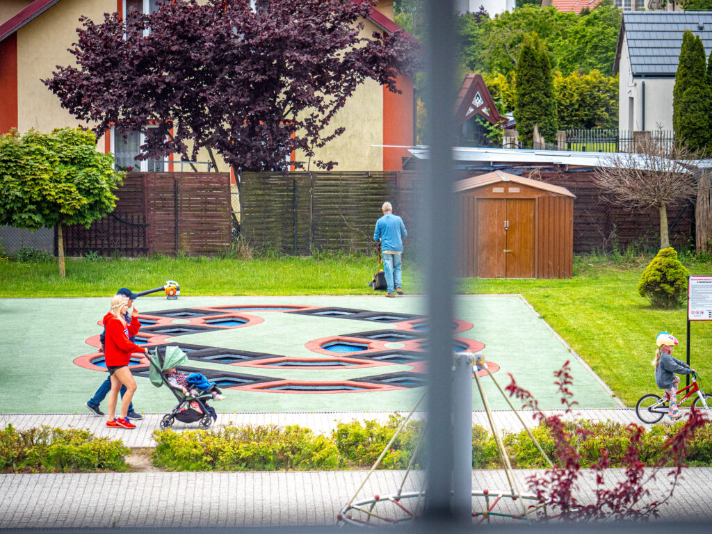 W ogrodzie przygotowaliśmy miejsce do zabawy dla dzieci, z piaskownicą, huśtawkami, trampoliną i domkiem. Dorośli mogą wypoczywać w pawilonie ogrodowym z wygodnymi meblami lub zorganizować grilla w specjalnie przygotowanej strefie.